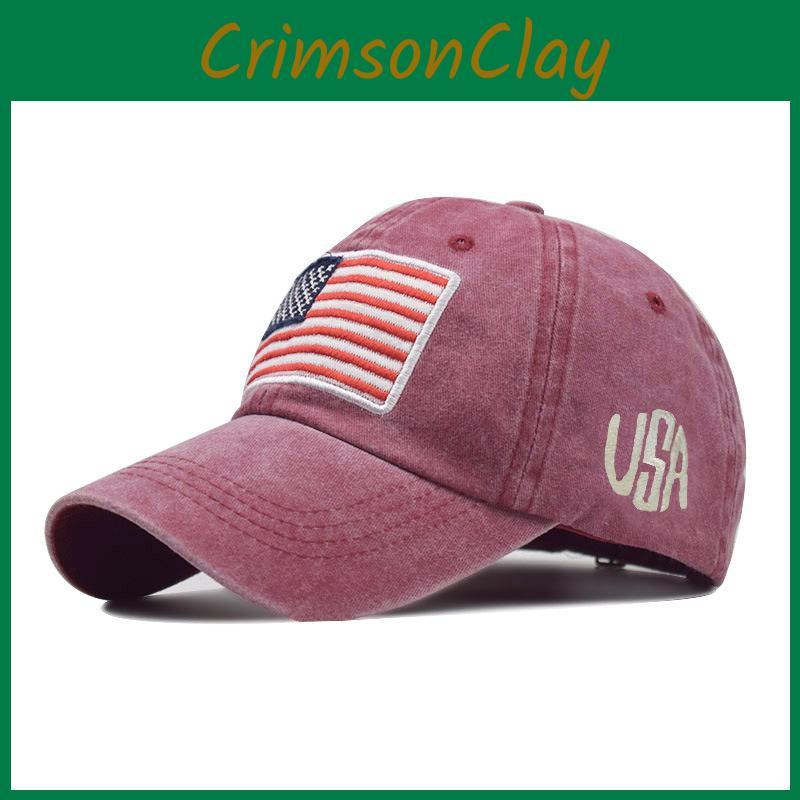 Introducing the must-have item for any fashion-savvy man - the classic American Flag baseball cap!Made from pure cotton, this vintage-style cap is perfect for adding a touch of Americana to your wardrobe.The washed-out look gives it that effortlessly cool vibe that pairs perfectly with any casual outfit.Crafted with a twill weave and embroidered with intricate stitching, this cap is not only stylish but also durable.