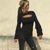 Fashion Sleeve Flare Solid Color Blouse Bottoming Cotton Sexy Clothing Tshirt
