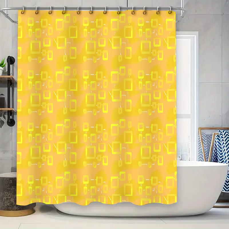 Yellow Rectangular Pattern Shower Curtain Waterproof Bathroom Decor For Home Decoration (Set 36)
