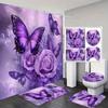 Romantic Rose Shower Curtain Polyester Waterproof Fashion Flowers Floor Mat Toilet Set Bath Accessories Mildew Proof