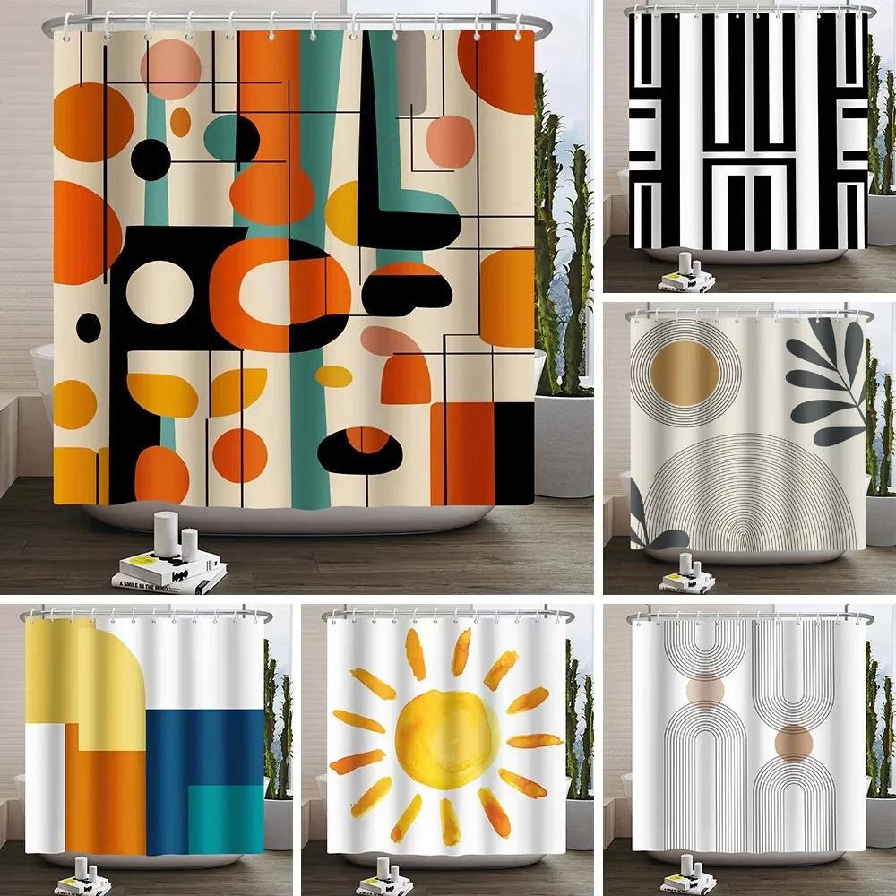 Geometric Line Round Color Block Shower Curtain Artistic Styling Simple Modern Polyester Shower Curtain Bathroom Decoration