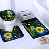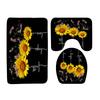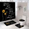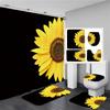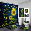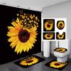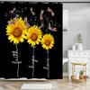 Magic Sunflower Butterfly Shower Curtain Sets Black Yellow Art Country Flower Bathroom Decor Curtains Bath Mats Rug Toilet Cover