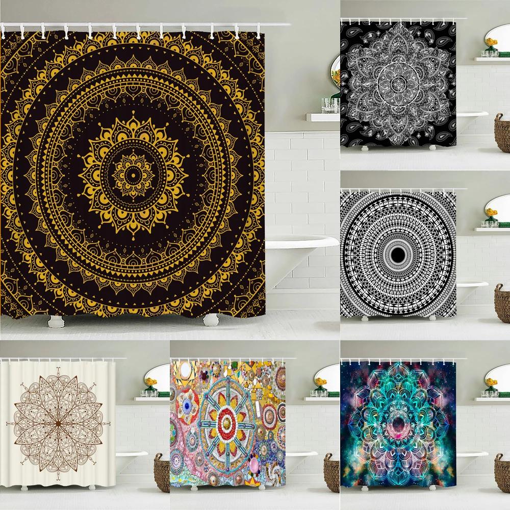 3D Print Bathroom Curtains Indian Mandala Shower Curtains With 12 Hooks Home Decoration Waterproof Fabric Bohemia Bath Screen