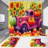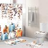 Fall Thanksgiving Day 4Pcs Autumn Pumpkin Maple Tree Leaves Shower Curtain Set With Non-Slip Rug Toilet Lid Cover And Bath Mat