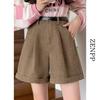 Acești pantaloni scurți eleganți cu talie înaltă în A sunt perfecți pentru sezoanele de toamnă și iarnă.. Confecționați din poliester moale de catifea reiată, oferă atât confort, cât și stil.. Având o talie înaltă măgulitoare și buzunare practice, acești pantaloni scurți sunt atât funcționali, cât și la modă.. Ideali pentru a fi asortați cu puloverele sau jachetele tale preferate, aceștia oferă un look șic, de sezon, pentru orice ocazie casual sau semi-formală.