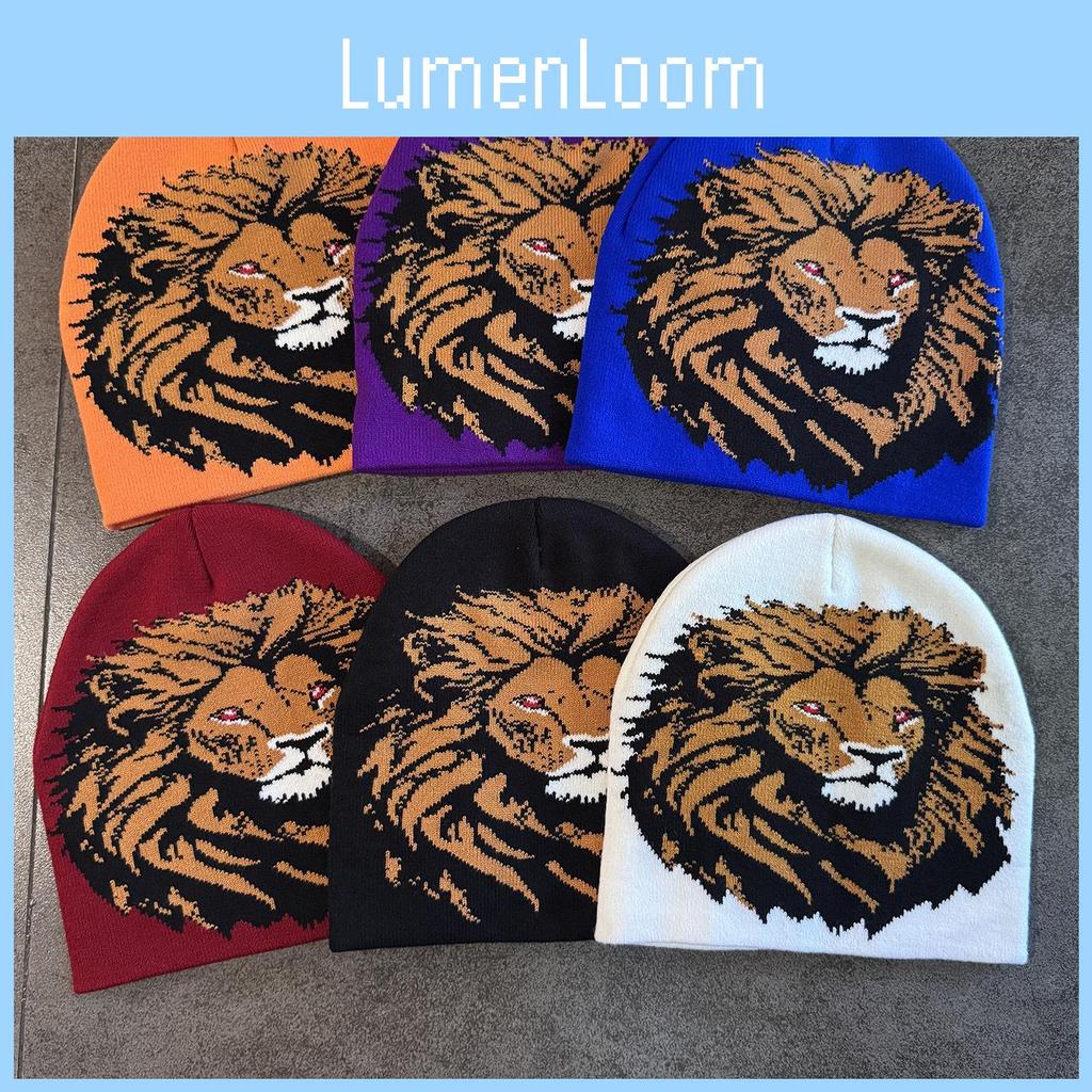 Trendy Knit Cap Warmth Beanie Hat With Lion Character Print For Daily Use