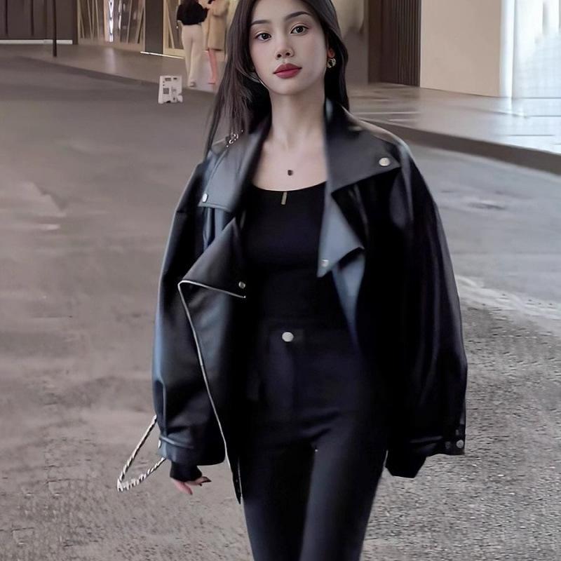 Autumn and Winter Street Sweet and Cool Leather Jackets for Women Loose Jacket Tops Versatile Cotton Coats for Women