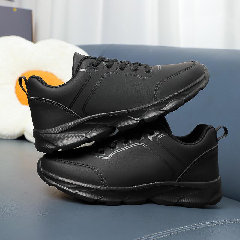 Waterproof leather sneakers women's lightweight all-black feet are not tired after standing for a long time, soft soles are non-slip, kitchen work sh