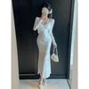 Elegant Nightclub Temperament Cardigan & Sexy Strappy Evening Dress Set