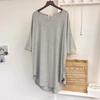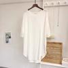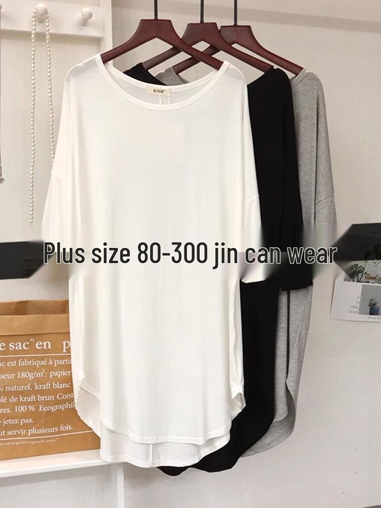 Experience comfort and style with this Plus Size Modal Ice Silk Short-Sleeve T-Shirt for Women, designed for the summer season. Its loose fit and hip-covering, mid-length design ensure a flattering silhouette. Made with a lightweight and breathable polyester material, this t-shirt features ruched detailing for a touch of elegance. The round neckline and long sleeves offer a versatile look, making it perfect for casual outings or relaxed gatherings.