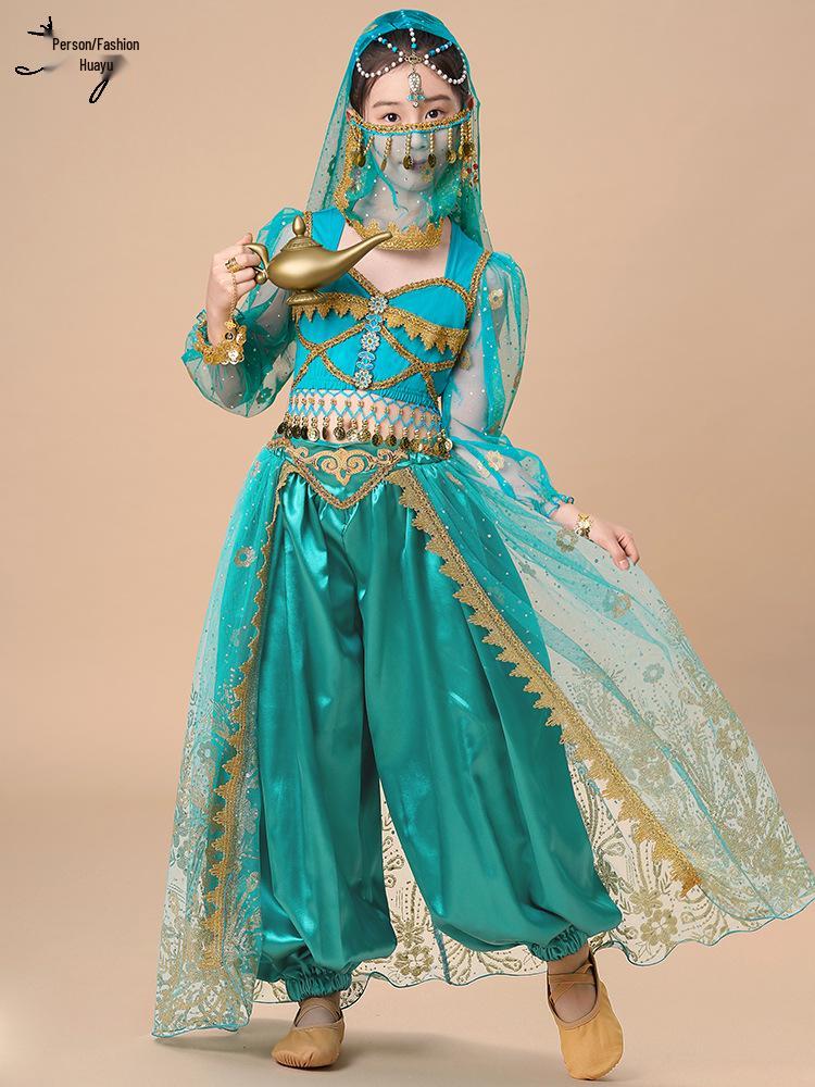Costum de dans popular Prințesa Jasmine 2025 pentru copii mici - Set exotic stil Dunhuang pentru spectacol pe scenă