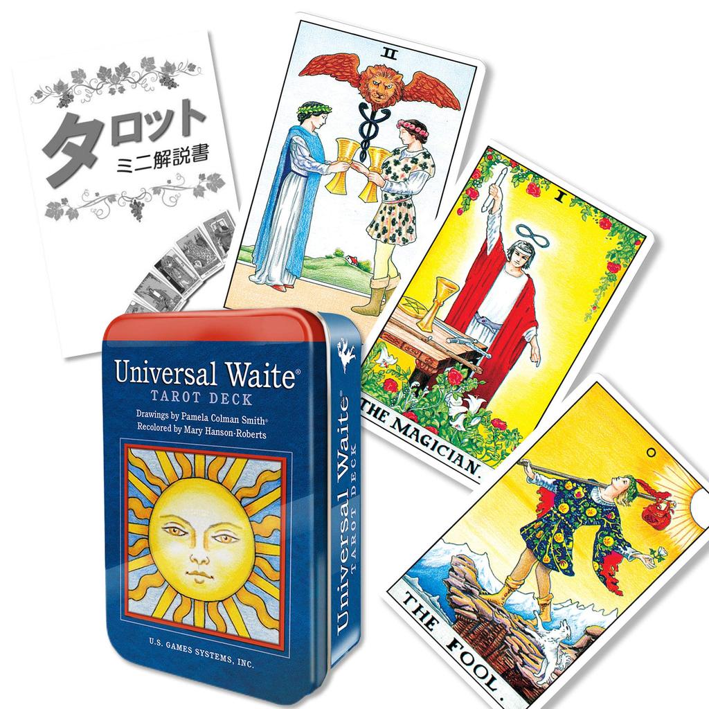 Universal Waite Tarot Deck in a 78 Tarot Mini with Japanese Instructions for Tarot and a Tin Tin, Cards, Size, Authentic, Instructions, Readings,