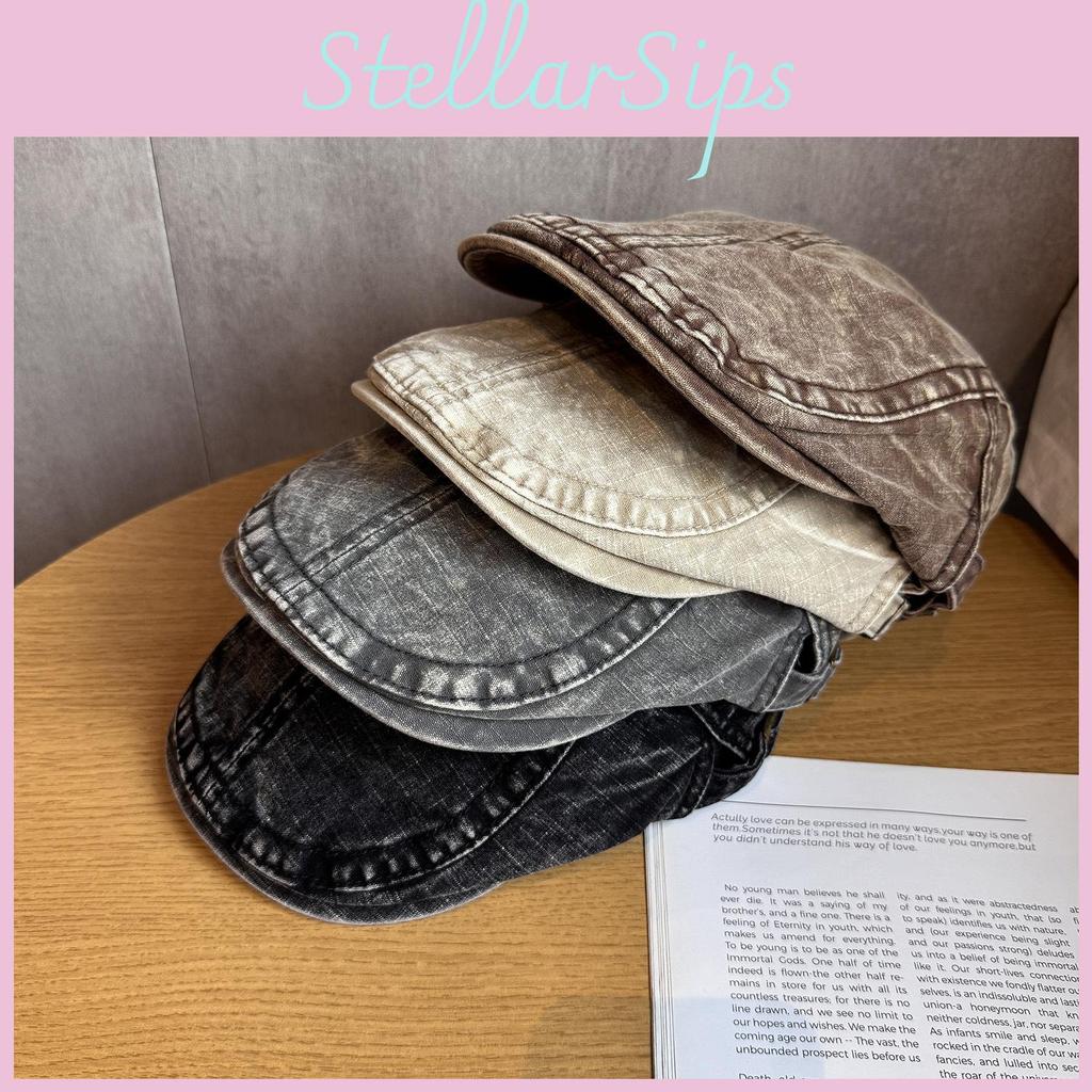 Retro Solid Color Toned Cotton Twill Cap Sunshade Casual Artistic Travel Hats