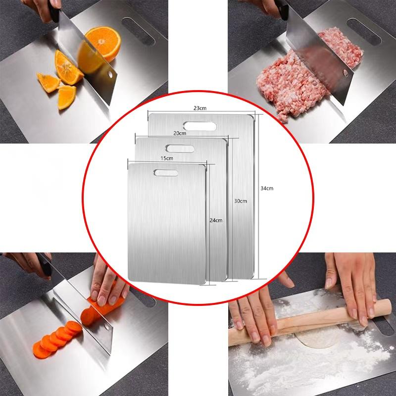 Stainless Steel Kitchen Cutting Board, Double-Sided Food Grade Chopping Board for Meat, Fruit & Dough