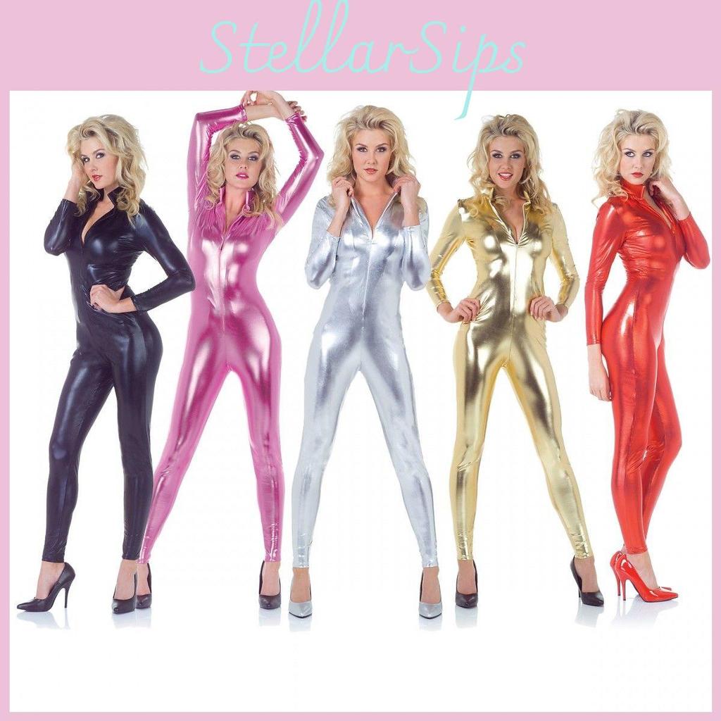 Catsuit Sexy Metallic Stretch Bodysuit Zipper Adult Costume Fashion Jumpsuit
