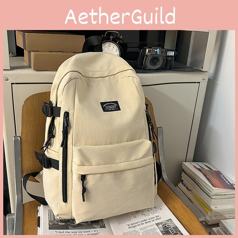 Backpack Designed Minimally With Solid Color And Letter Print Design For Teens