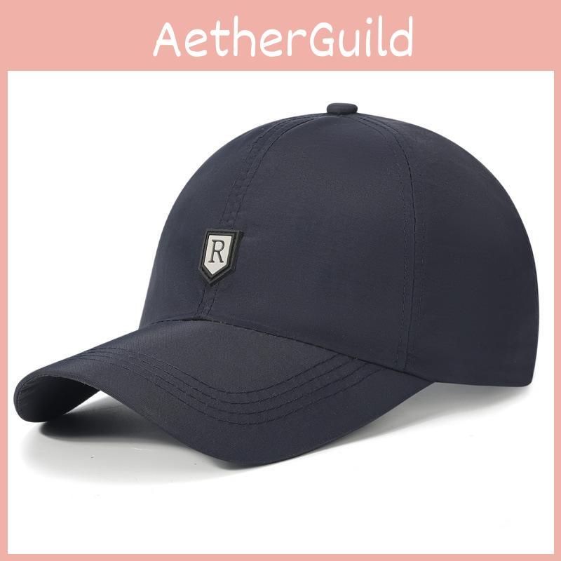 R Label Leather Mens Baseball Cap Quick Dry Sun Protect Fashion Casual Outdoor