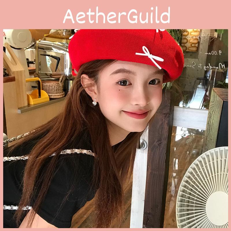 Bow Beret Red Painter Hat Uv Protection Breathable Female Lightweight Style
