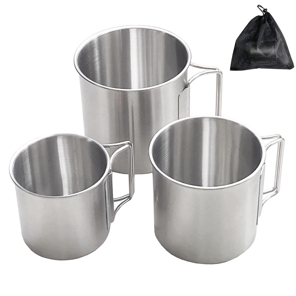 Seekdem Stackable Stainless Steel Mugs, Set of 3, Outdoor/Camping Mugs with Mesh Bag (SD-SMG3SET)