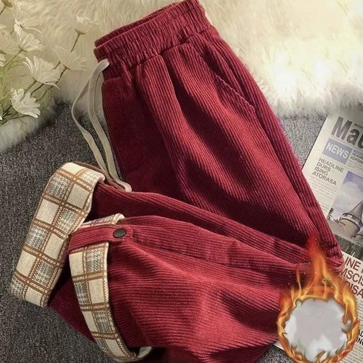 Spring Winter Corduroy Trousers Women's Retro Corduroy Casual Pants Harajuku Wide Leg Pants Street Jogging Pants Straight High Waist Pants