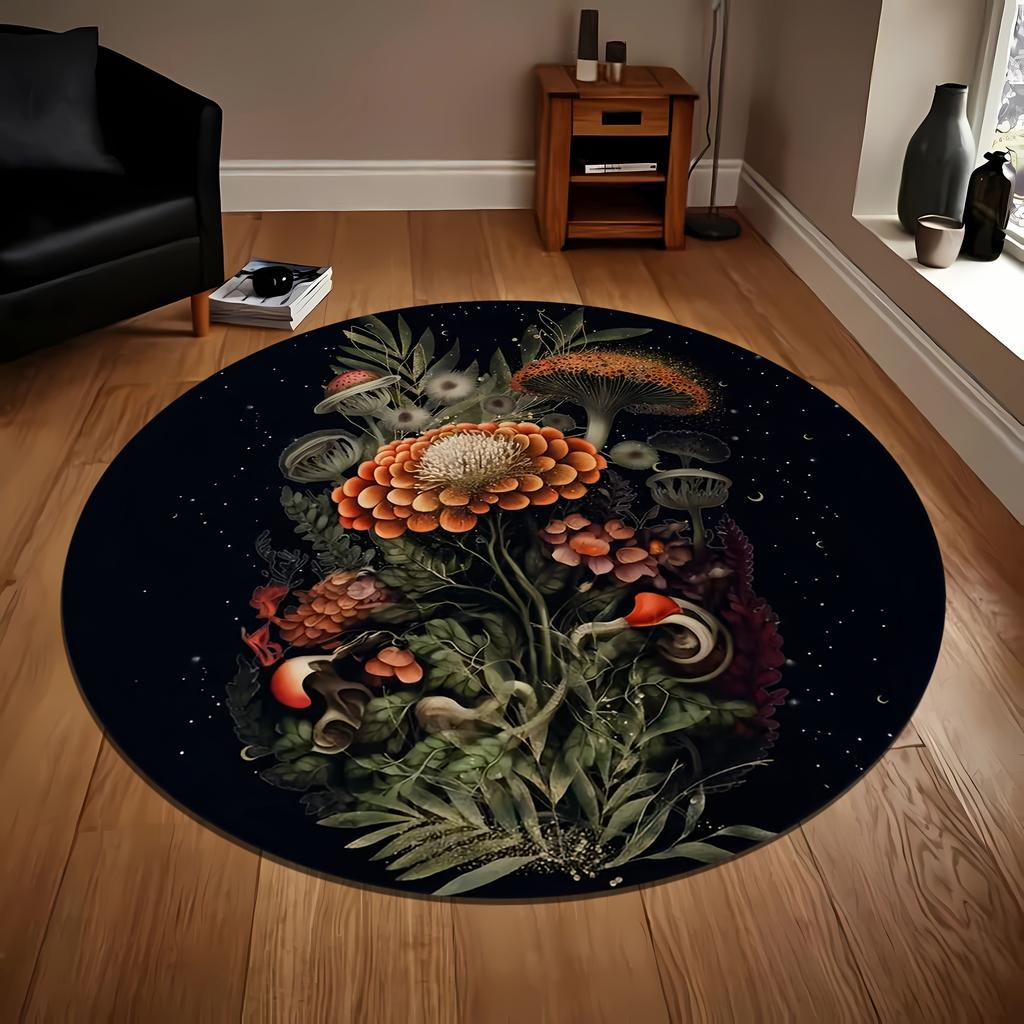 Mystical Mushroom Starry Sky Pattern Round Shape Floor Mats Kitchen Hallway Runner Rug Bedroom Living Room Soft Carpet Non-slip Area Rug