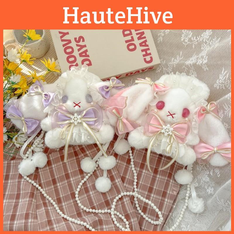 Handmade Lolita Hanging Ear Rabbit Bag Butterfly Bow Pearl Shoulder Strap Design
