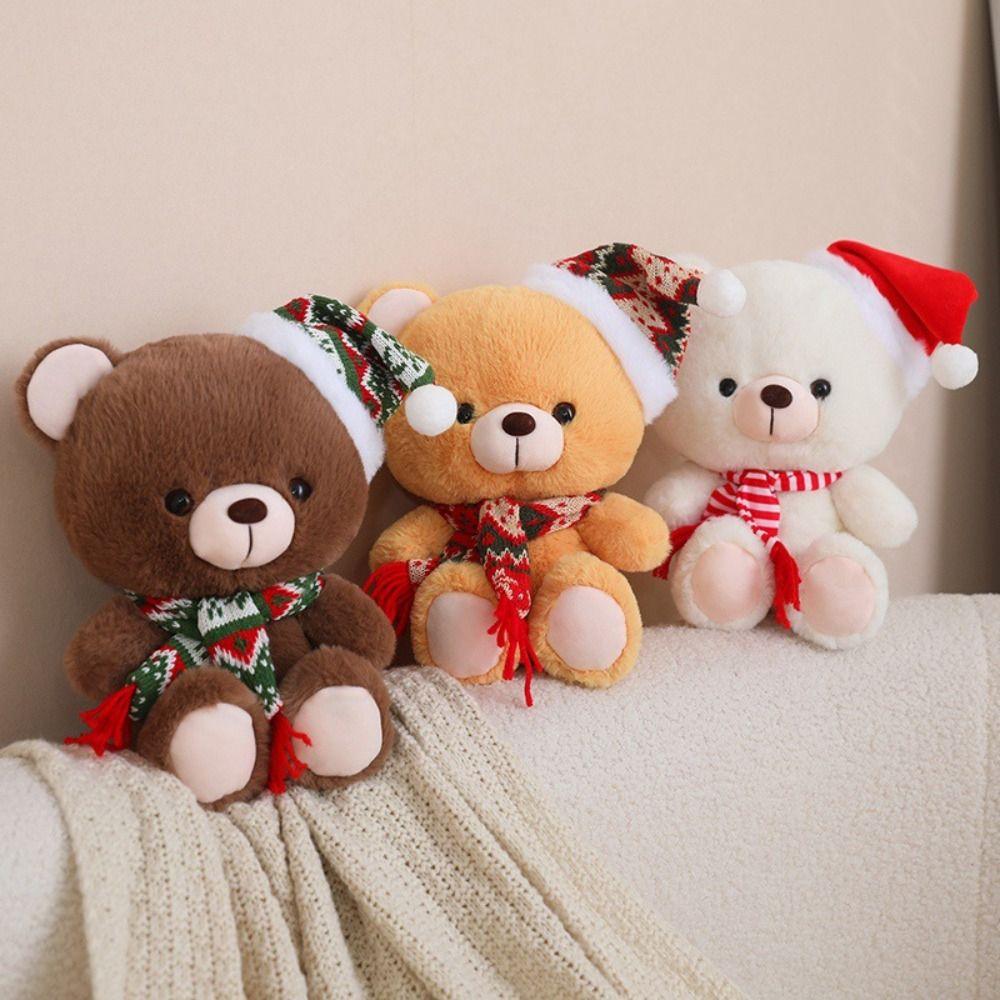 Wear Christmas Hat Bear Stuffed Animals. Knitted Scarf Bear Plushies Doll Birthday Gifts