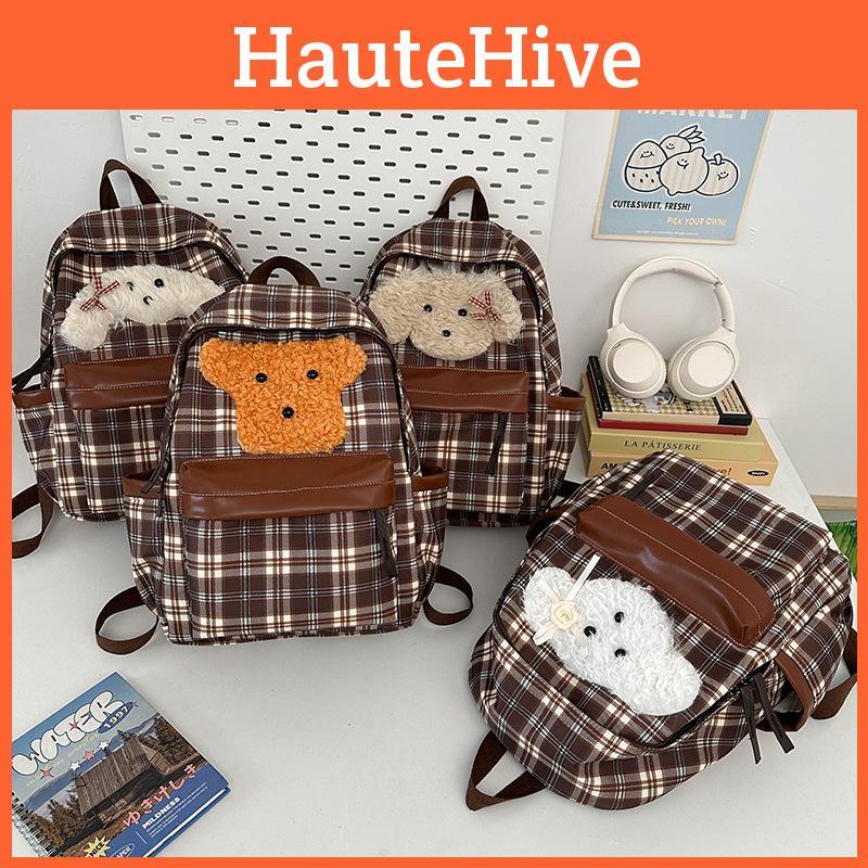 Plush Patterned Puppy Backpack Student Schoolbag Outdoor Leisure Bag Travel