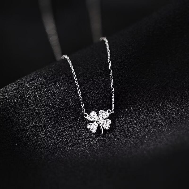Diamond Four-Leaf Clover Necklace: Women's Luxury Fashion Jewelry, Elegant Temperament Design, Light Style Clavicle Chain