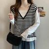 Plus Size Women's Striped Knitted Sweater with Long Sleeves - Slimming Two-Piece Look