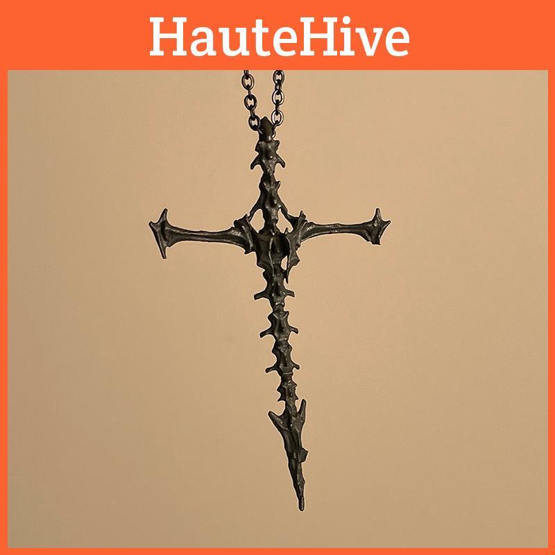 Black Gothic Unique Cross Skeleton Pendant Necklace Stylish Alloy Jewelry For Trendy Men And Women