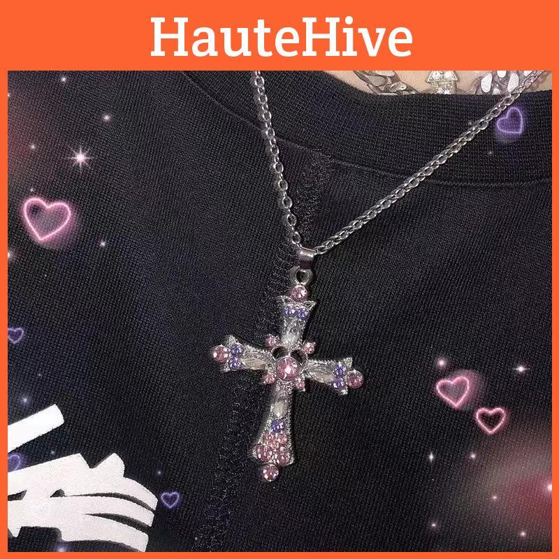 Cross Rhinestone Pendant Necklace Trendy Alloy Jewelry Women Gift Decoration