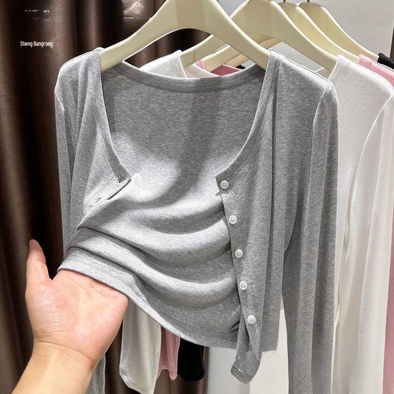 Women's Grey Knitted Sleeveless Sunscreen Cardigan Shawl - Summer Cover-up Dress