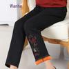 Wanhe Women's Embroidered High-Waist Fleece-Lined Winter Pants