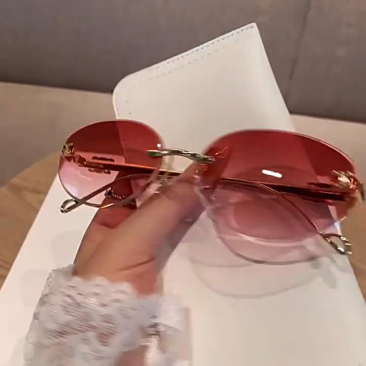 Ochelari de soare fără ramă pentru femei, Stil retro sofisticat, Protecție solară, Rame ovale, Ochelari de soare metalici pentru bărbați.