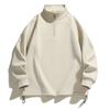 Pulover cu fermoar cu mâneci lungi, culoare uni, cu gât înalt, cu șnur, sport casual, top larg pentru bărbați