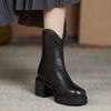 Leather Middle Heel Round Toe Warm Women's Half High Boots Autumn Winter Waterproof Chic and Elegant Ladies Mid Calf Shoes