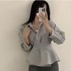 Fustă Retro 2023 Strâmtă pe Talie & Cămașă Chic cu Mânecă Lungă și Volane