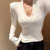 Top damă solid cu gât în V, subțiere, primăvară/vară 2025 - La modă și versatil