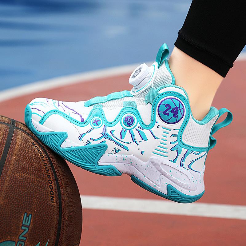 Children's basketball shoes winter new velvet large cotton thermal sneakers medium and older children's button leather sneakers running shoes