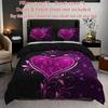 3pcs Purple Heart Rose Floral Print Duvet Cover Set - 1 Duvet Cover 2 Pillowcases Breathable Polyester Perfect for All Seasons