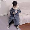 Boys' Korean Style Mid-Length Trench Coat - Stylish Spring/Autumn Double-Faced Wool Outerwear with Turn-Down Collar.