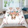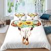 Bull Skull Duvet Cover Chic Feather Bedding Bohemian Exotic Branches Flower for Kids Teens Women Men Room Decoration Quilt Cover
