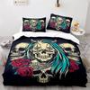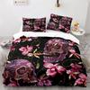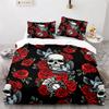Sugar Skull Rose Duvet Cover Gothic Spooky Skeleton Skull Duvet Cover Horror Theme Floral for Teen Adult for Bedroom Decoration