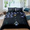 Art Duvet Cover Dimgray Science Fiction Space Themed Minimalist Illustration with Stars Planets and Rocket for Room Decorative
