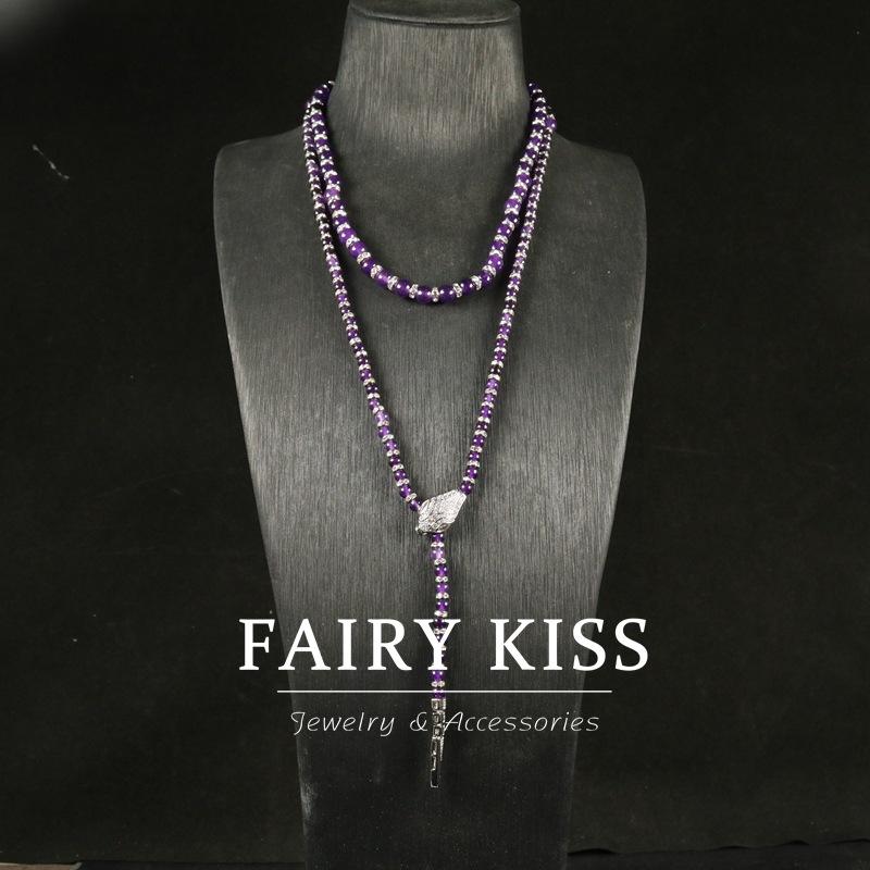 Spirit Snake Amethyst Handmade Beaded Diamond Necklace Copper Wax Inlaid Exquisite Elegant Light Luxury Jewelry