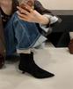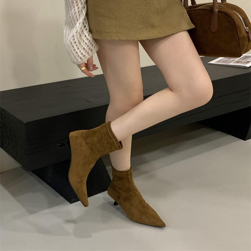 French pointed short boots women's 2025 autumn and winter new stiletto suede thin bare boots Internet celebrity elastic socks Martin boots