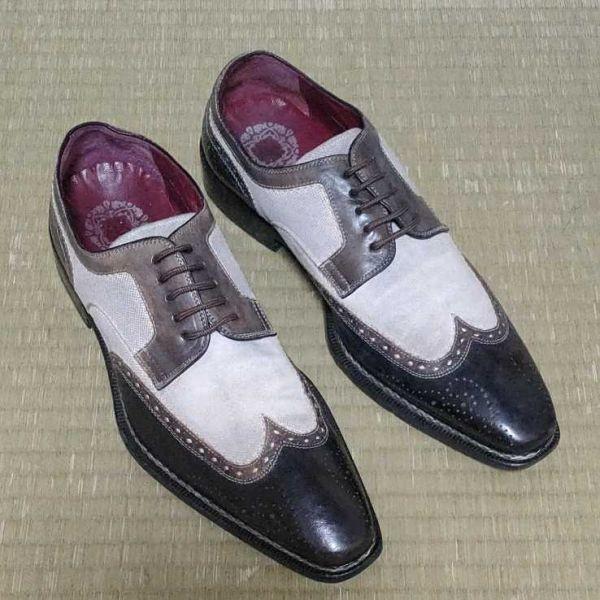 Vintage MEZLAN two-tone wingtip shoes made in Spain [8M, approximately 26.0cm, off-white and black] with a long nose. ★XA11
