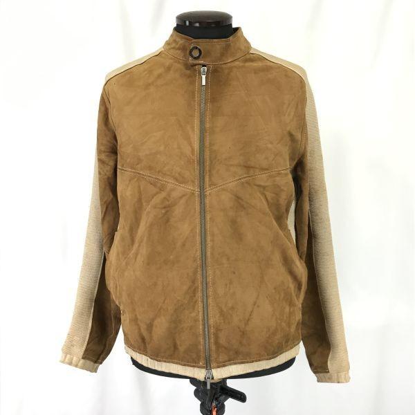 VERSACE CLASSIC Suede Leather Knit Single Riders Jacket Men M Camel(USED)