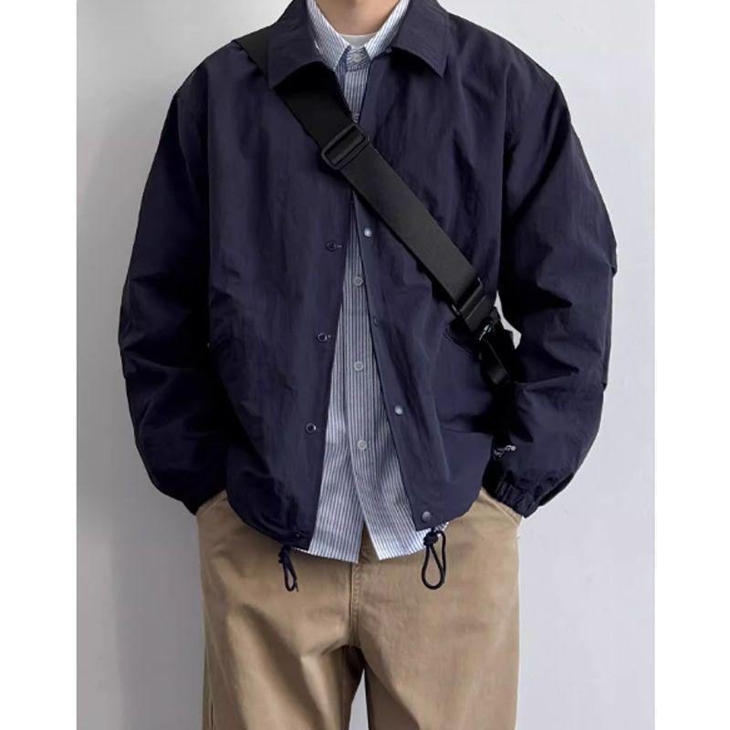 This Men's Japanese Retro Loose-Fit Coach Jacket is designed for those who appreciate a blend of classic and contemporary style. Crafted from fine corduroy, this jacket is perfect for spring and autumn wear, offering a thin outerwear layer that maintains both comfort and style. The turn-down collar and versatile solid color make it an ideal addition to any wardrobe, enhancing a trendy uniform look that complements a variety of outfits. Its simple, workwear-inspired design makes it a smart choice for casual and semi-formal occasions alike.
